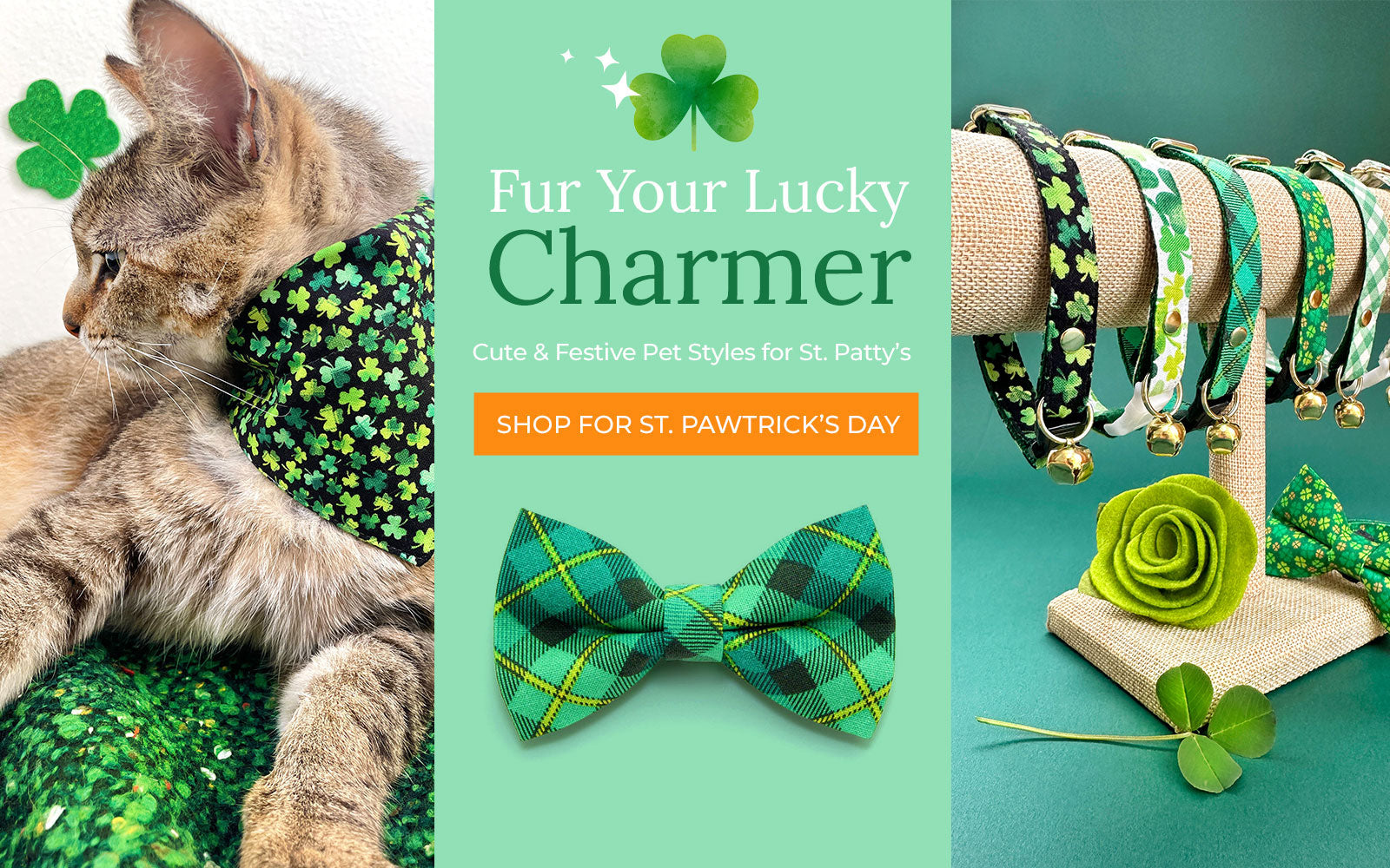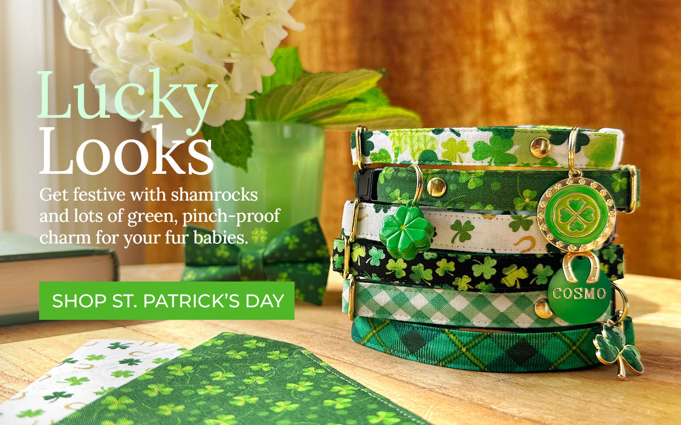 With 300+ designs for every holiday, season, and color theme —you can celebrate your pet’s personality in style. Choose your size, hardware finish, clasp type (breakaway or non-breakaway), plus matching bow ties, bandanas, and engraved ID tags for a complete look.