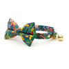 Cat Collar + Flower Set - "Starry Night" - Gold & Blue Cat Collar w/ Sky Blue Felt Flower (Detachable) / Cat, Kitten + Small Dog Sizes