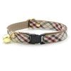 Cat Collar & Bunny Ear Bow Set - "Newberry" - Tan Plaid Cat Collar w/ Matching Bunny Bow Tie / Cat, Kitten + Small Dog Sizes