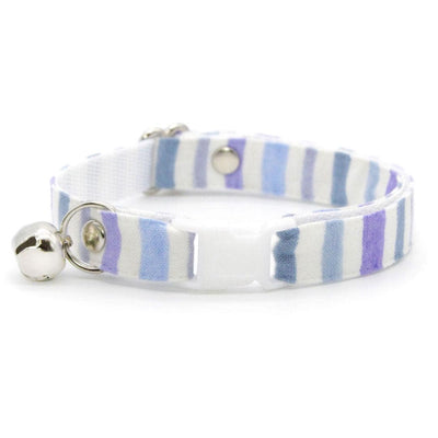 Cat Collar - "Indigo Sky" - Striped Cat Collar / Spring, Summer, Easter, Nautical / Breakaway Buckle or Non-Breakaway / Cat, Kitten + Small Dog Sizes