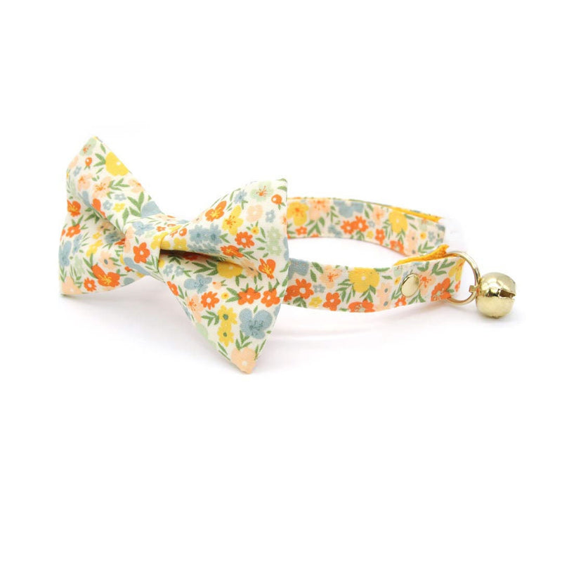 Cat Collar - "Aurora" - Orange & Yellow Floral Cat Collar / Fall, Spring, Marigolds, Buttercups, Wedding / Breakaway Buckle or Non-Breakaway / Cat, Kitten + Small Dog Sizes
