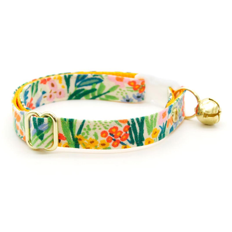 Cat Collar & Bunny Ear Bow Set - "Fantasia - Day" - Rifle Paper Co® Yellow Floral Cat Collar w/ Matching Bunny Bow Tie / Cat, Kitten + Small Dog Sizes