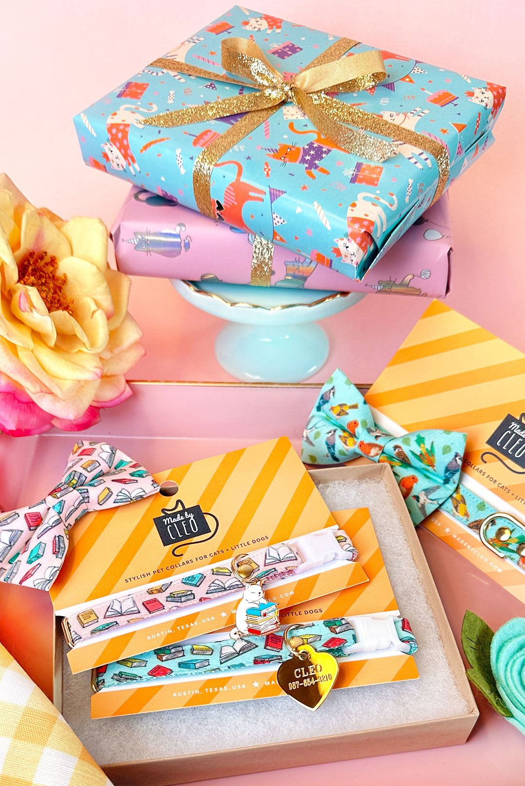 Treat your cat lover friend to a gift box filled with delightful holiday costumes, all-season collar accessories “outfits” and other fun & charming items for their feline companion. For the dog lover, surprise them with a gift card so they can spoil their pup with a new collar or adorable bow tie.