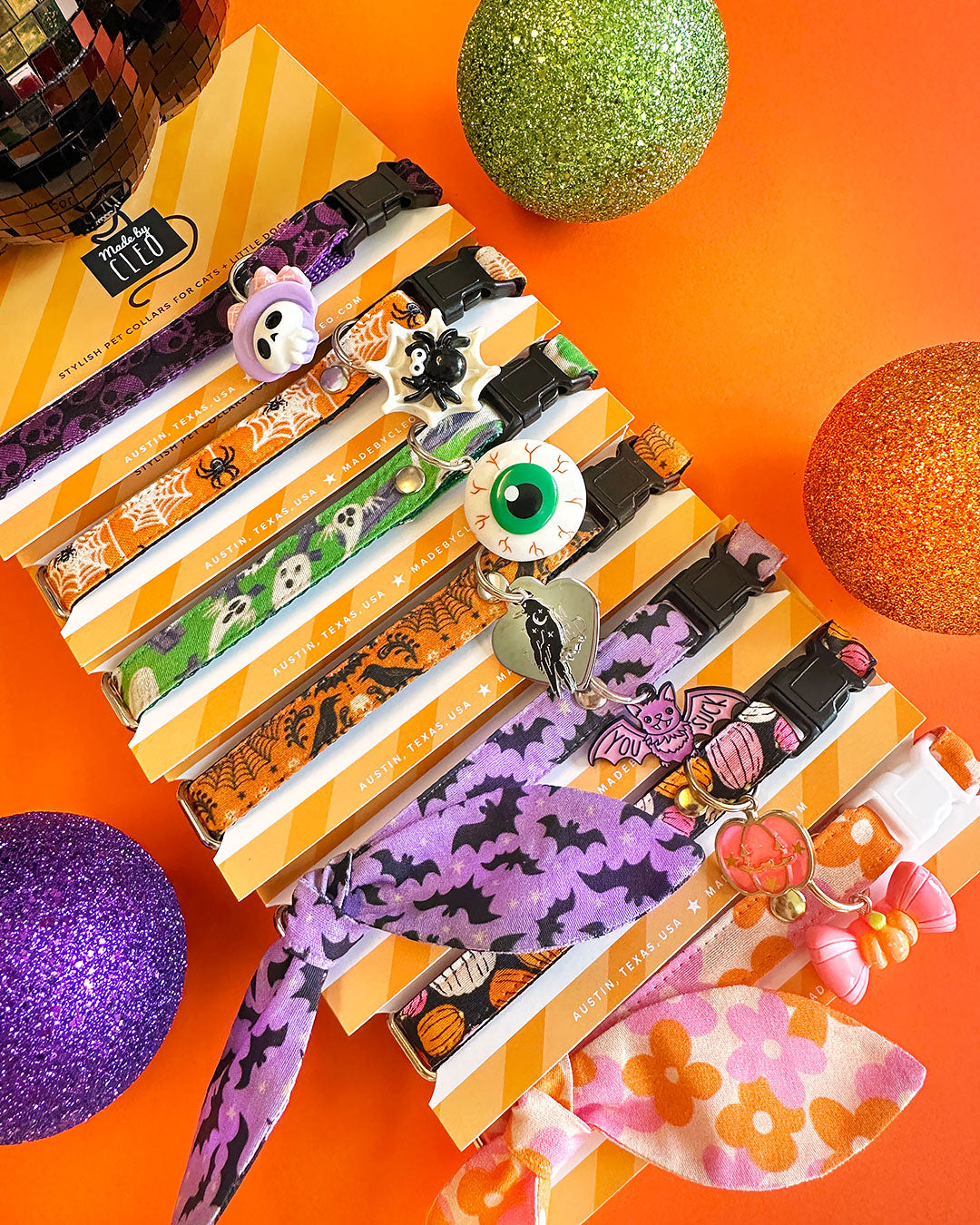 Unleash your cat's inner familiar with Made By Cleo cat accessories! Transform your cat into a captivating or spooky-fun character with our haunting collection of Halloween cat collars and accessories!