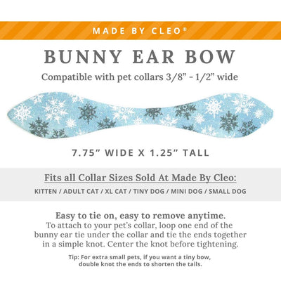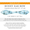• Bunny Ear Bow Tie Size: 7.75" x 1.25" (w x h) - this bow tie comes in one standard size that fits all collars in our store (and is compatible with any pet collar between 3/8" - 1/2" wide).