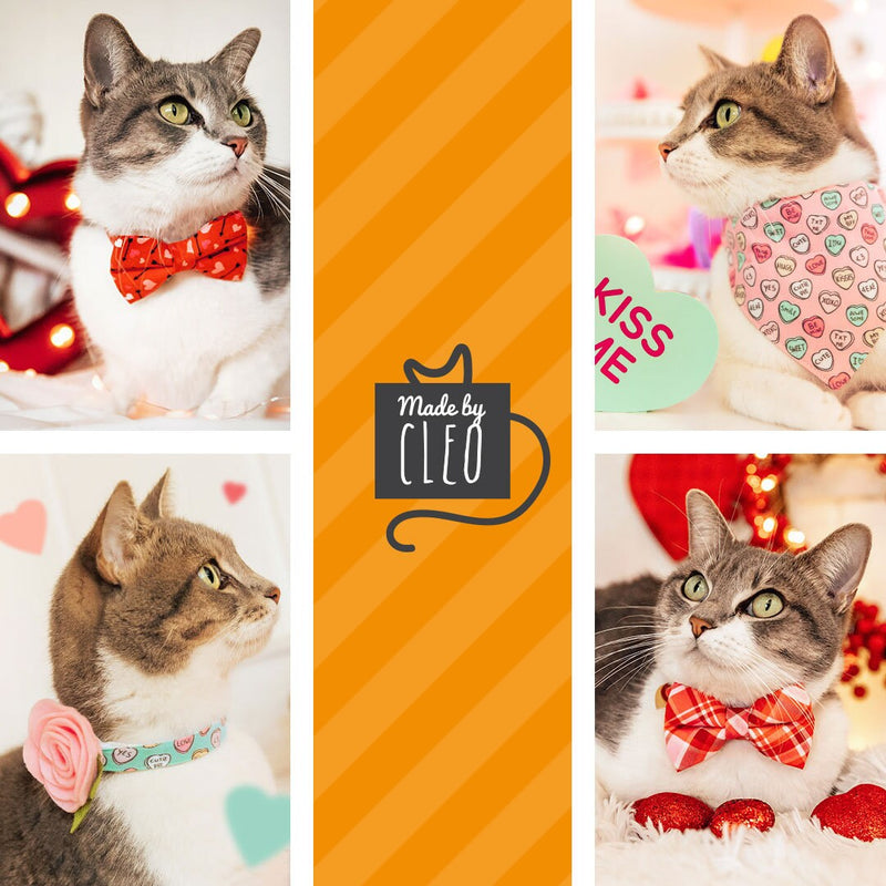 Pet Bow Tie - "Conversation Hearts - Mint" - Candy Heart Sayings Cat Bow Tie / Valentine's Day / For Cats + Small Dogs (One Size)