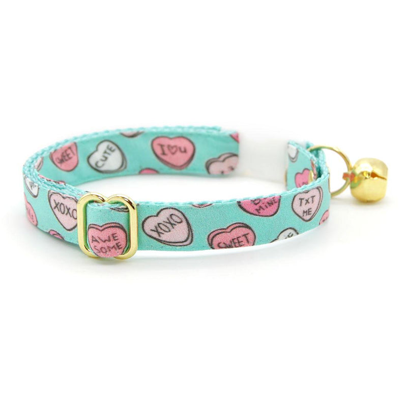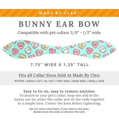 Cat Collar & Bunny Ear Bow Set - "Conversation Hearts - Mint" - Valentine's Day Candy Hearts Cat Collar w/ Matching Bunny Bow Tie / Tie-On Scarf / Cat, Kitten + Small Dog Sizes