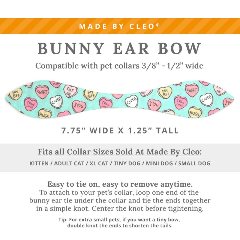 • Bunny Ear Bows are self-tie: Easily tie them onto a collar or remove them anytime, similar to a small neck scarf. 100% Machine washable, air dry. Press with iron using Cotton setting if desired.