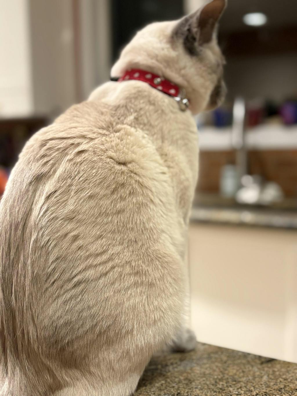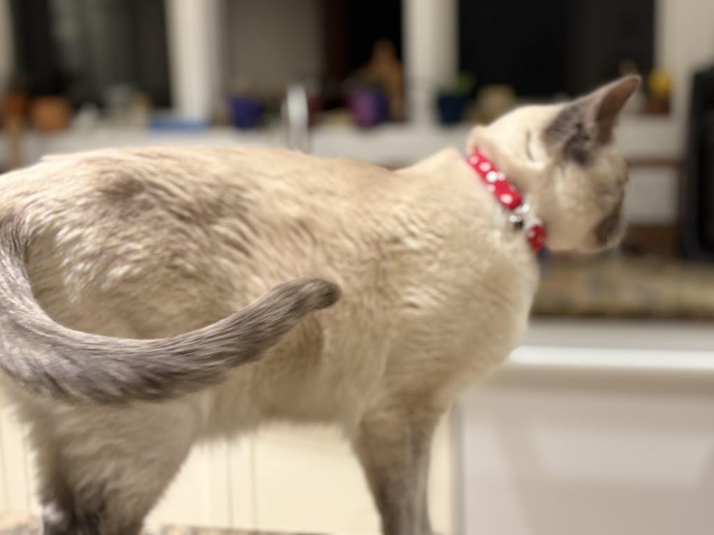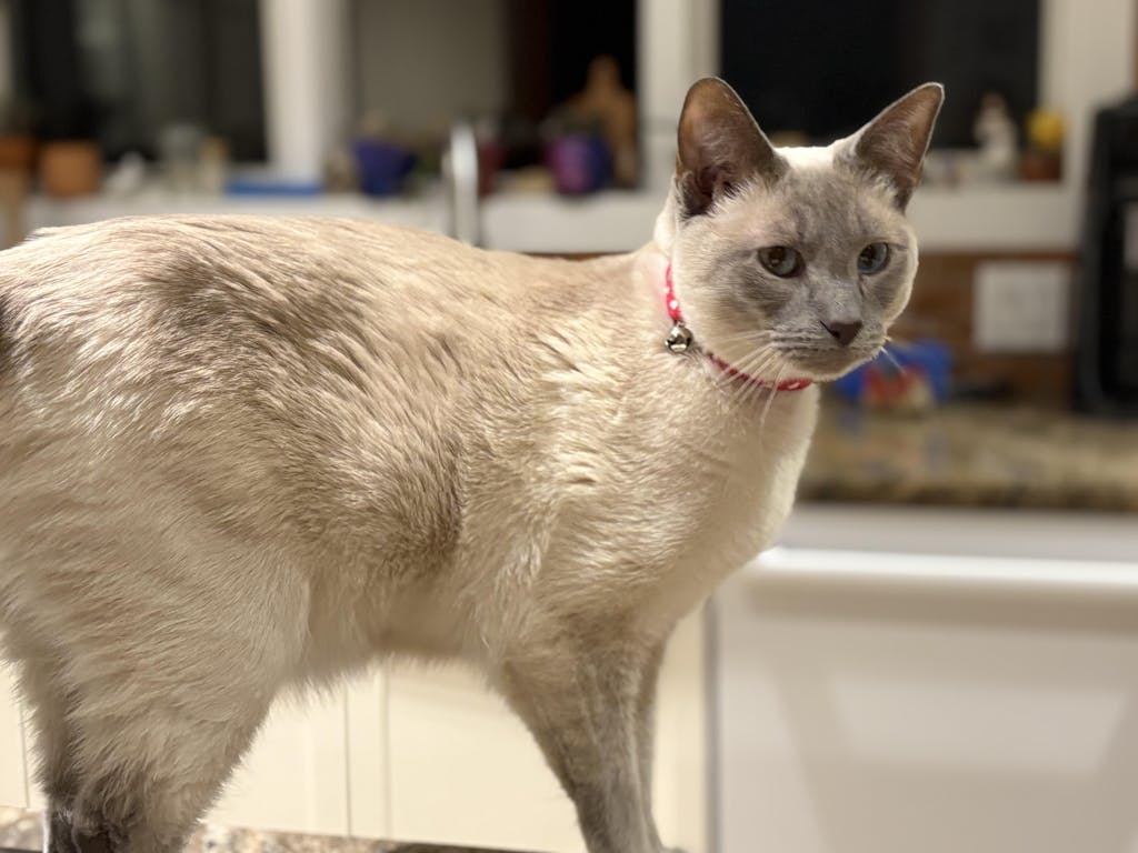 This is a bright and cheerful collar that looks really beautiful against Sharq's fur. This collar is very high quality and I ordered the adult cat size for our Siamese, who weight 11 pounds. I tried the flat name tag this time, which is more masculine than the tags on his other collars. It is hard to tell if he is a fan or not. I mostly keep him in a collar with a bell so I don't step/trip on him.