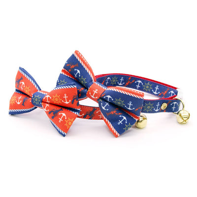 Cat Collar - "Nautical Navy" - Blue Anchor & Lobster Cat Collar / Summer, Sailing, Preppy / Breakaway Buckle or Non-Breakaway / Cat, Kitten + Small Dog Sizes