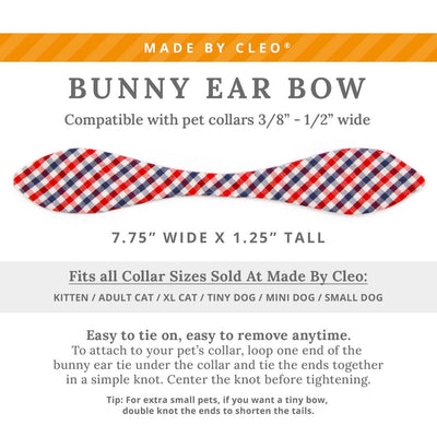 Cat Collar & Bunny Ear Bow Set - "Heritage" - Red Blue Gingham Check Plaid Cat Collar w/ Matching Bunny Bow Tie / Patriotic, Preppy, 4th of July / Tie-On Scarf / Cat, Kitten + Small Dog Sizes