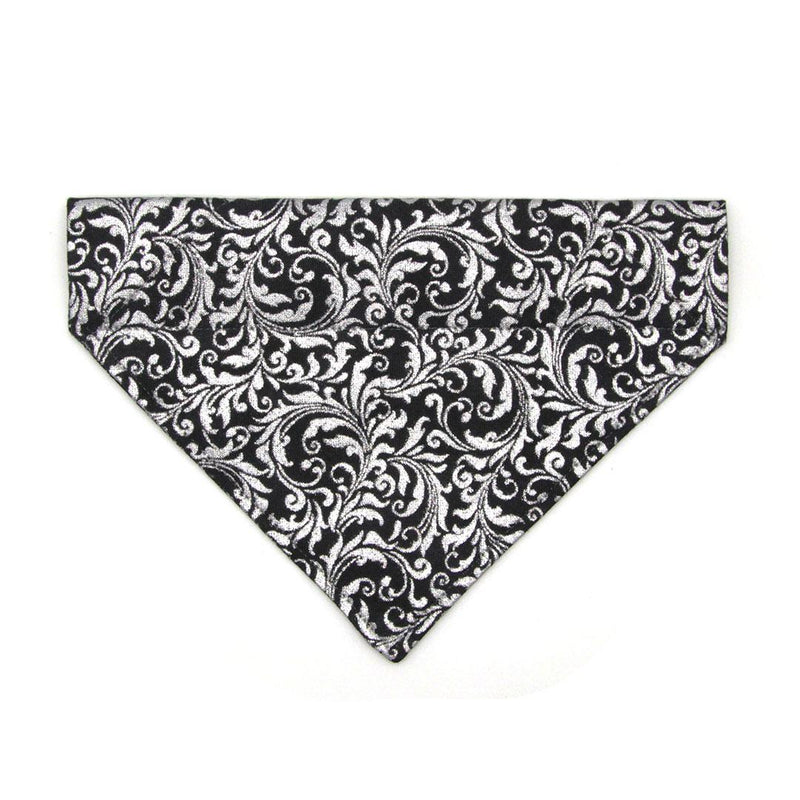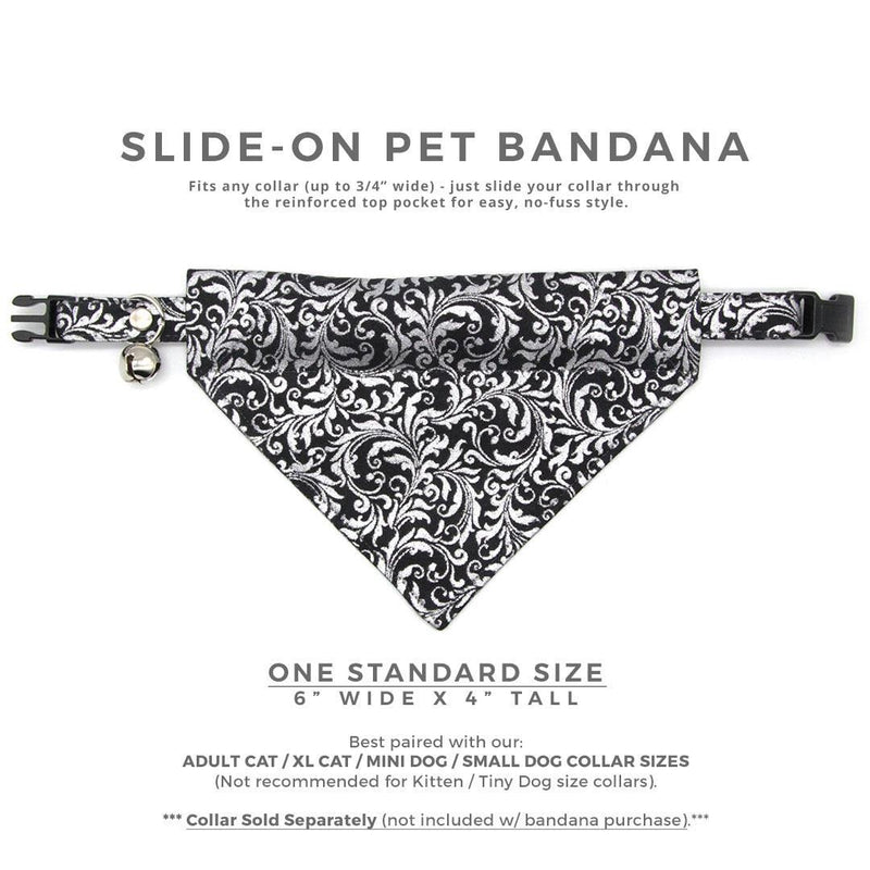 Cat Bandana - "Royal Sterling" - Black & Metallic Silver Bandana for Cat + Small Dog / Wedding, New Years, Gothic, Victorian / Slide-on Bandana / Over-the-Collar