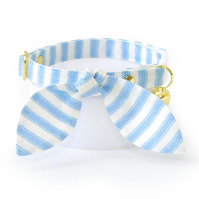 Blue Cat Collar - "Veranda - Blue" - Light Blue Striped Cat Collar / Spring, Summer, Seersucker / Breakaway Buckle or Non-Breakaway / Cat, Kitten + Small Dog Sizes