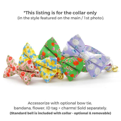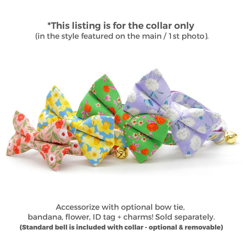 Cat Collar - "Posies" - Pink Floral Cat Collar / Spring, Easter, Valentine's Day / Breakaway Buckle or Non-Breakaway / Cat, Kitten + Small Dog Sizes