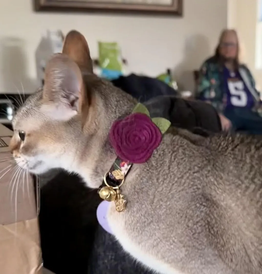 I have purchased multiple collars over the years for my cats and they look adorable and hold up well. Our cats have always been males but I finally got my “little girl” Singapura kitten and decided she had to have this cute little flower. And it was so cute, on day one, day two, on day three I noticed some fraying and by one week it looked like a felt blob. I knew that a small felt flower would not hold up very long but I had hoped for at least a week.