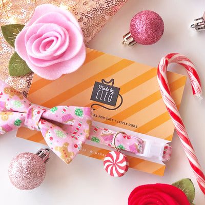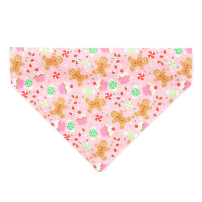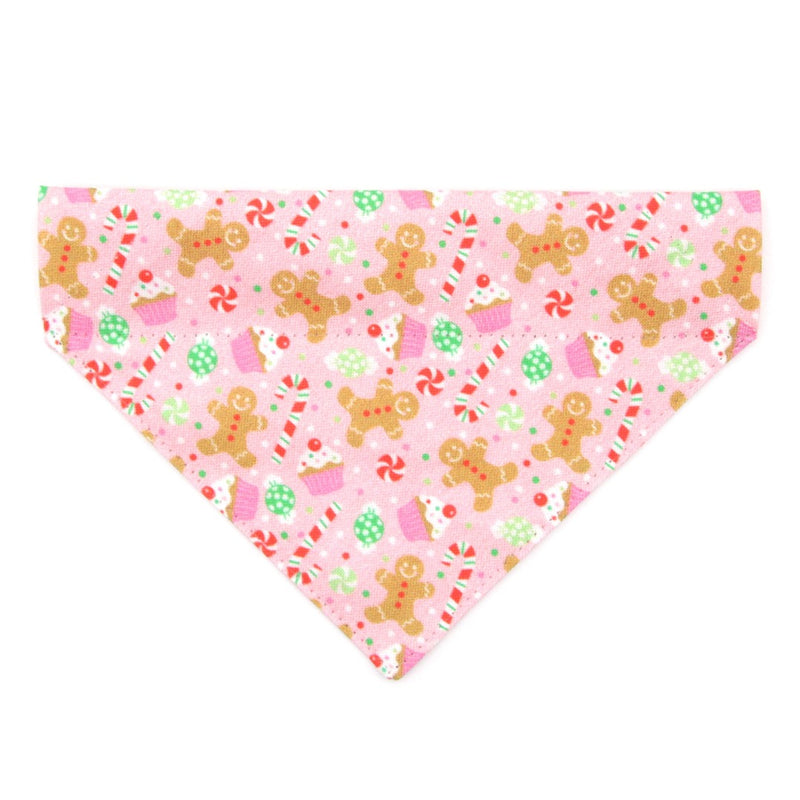 Pet Bandana - "Sugar & Spice" - Pink Gingerbread Bandana for Cat + Small Dog / Holiday / Slide-on Bandana / Over-the-Collar (One Size)
