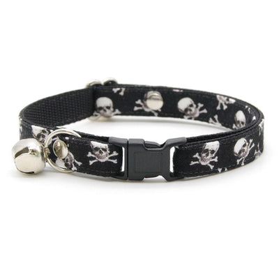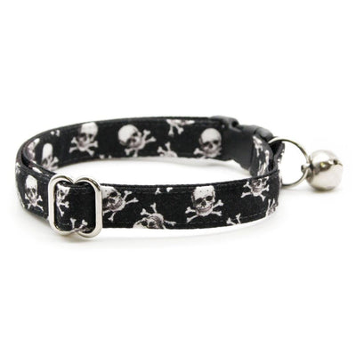 Halloween Cat Collar + Flower Set - "Misfit" - Skull Cat Collar w/ Orange Felt Flower (Detachable) / Cat, Kitten + Small Dog Sizes