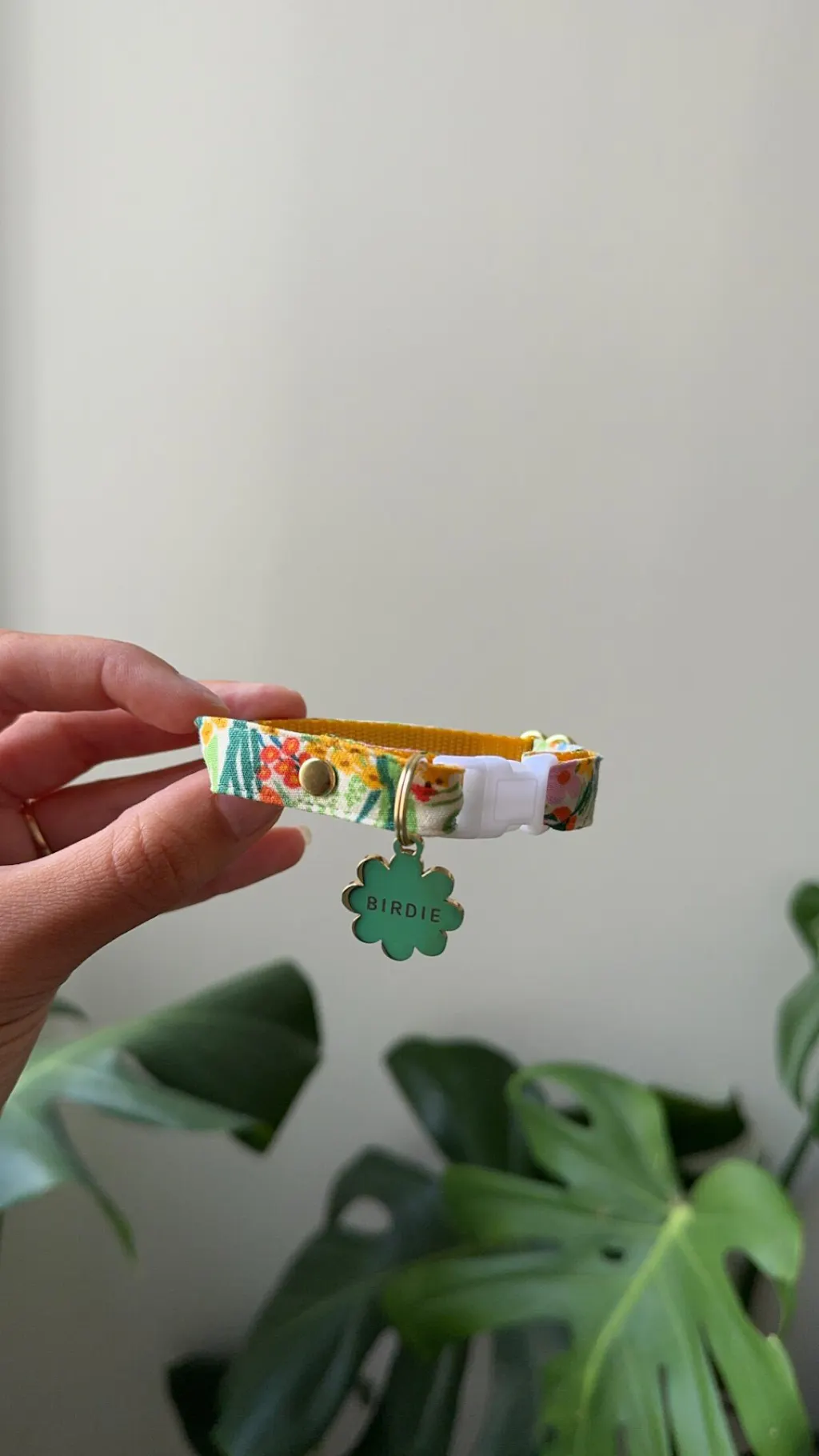 Cat Collar - "Fantasia - Day" - Rifle Paper Co® Yellow Floral Cat Collar / Spring, Easter, Summer / Breakaway Buckle or Non-Breakaway / Cat, Kitten + Small Dog Sizes