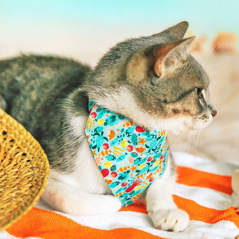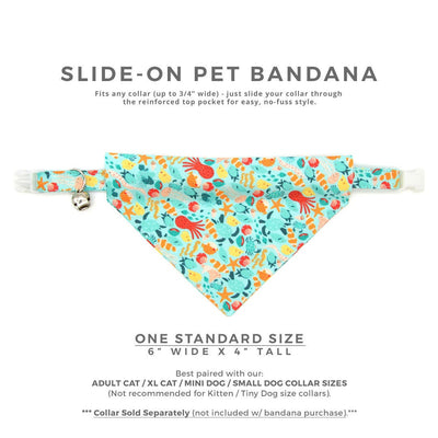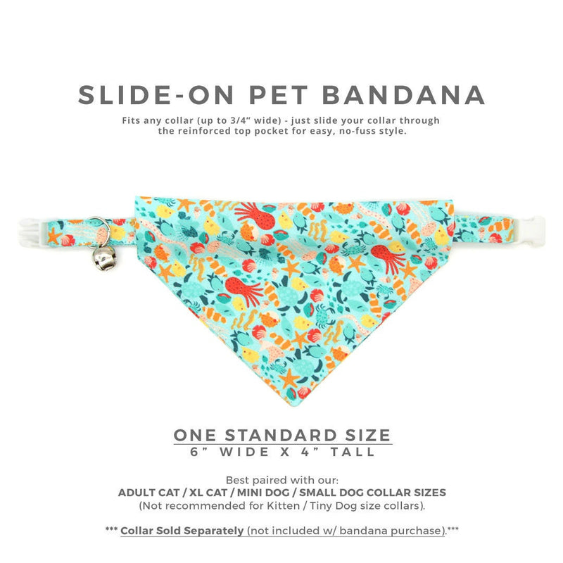 Pet Bandana - "Ocean Life" - Aquatic Fish Bandana for Cat + Small Dog / Summer, Beach, Sea, Marine / Slide-on Bandana / Over-the-Collar (One Size)