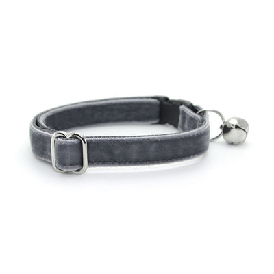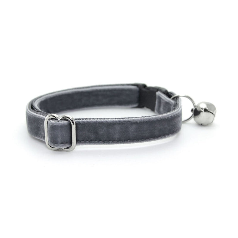 Cat Collar - "Velvet - Storm Gray" - Dark Grey Velvet - Breakaway Buckle or Non-Breakaway / Cat, Kitten + Small Dog Sizes