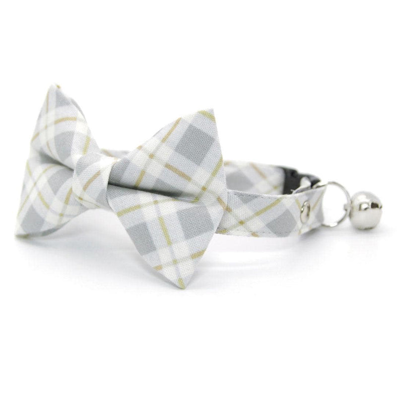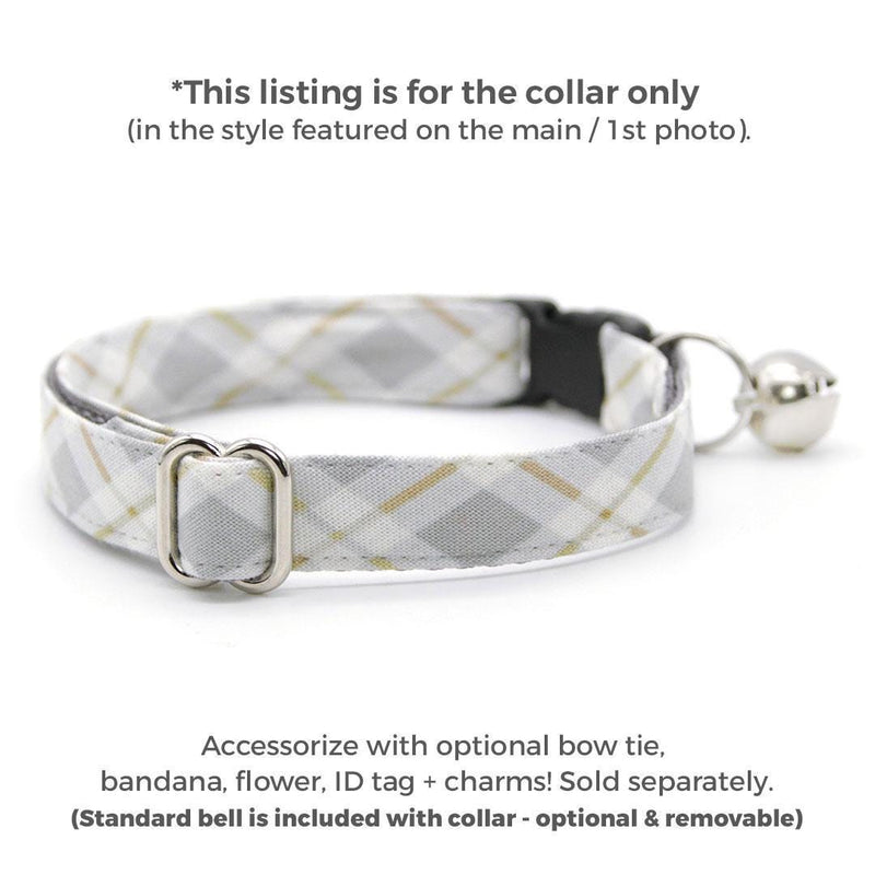 Gray Cat Collar - "Earl Grey" - Light Gray Plaid Cat Collar / Winter, Neutral / Breakaway Buckle or Non-Breakaway / Cat, Kitten + Small Dog Sizes