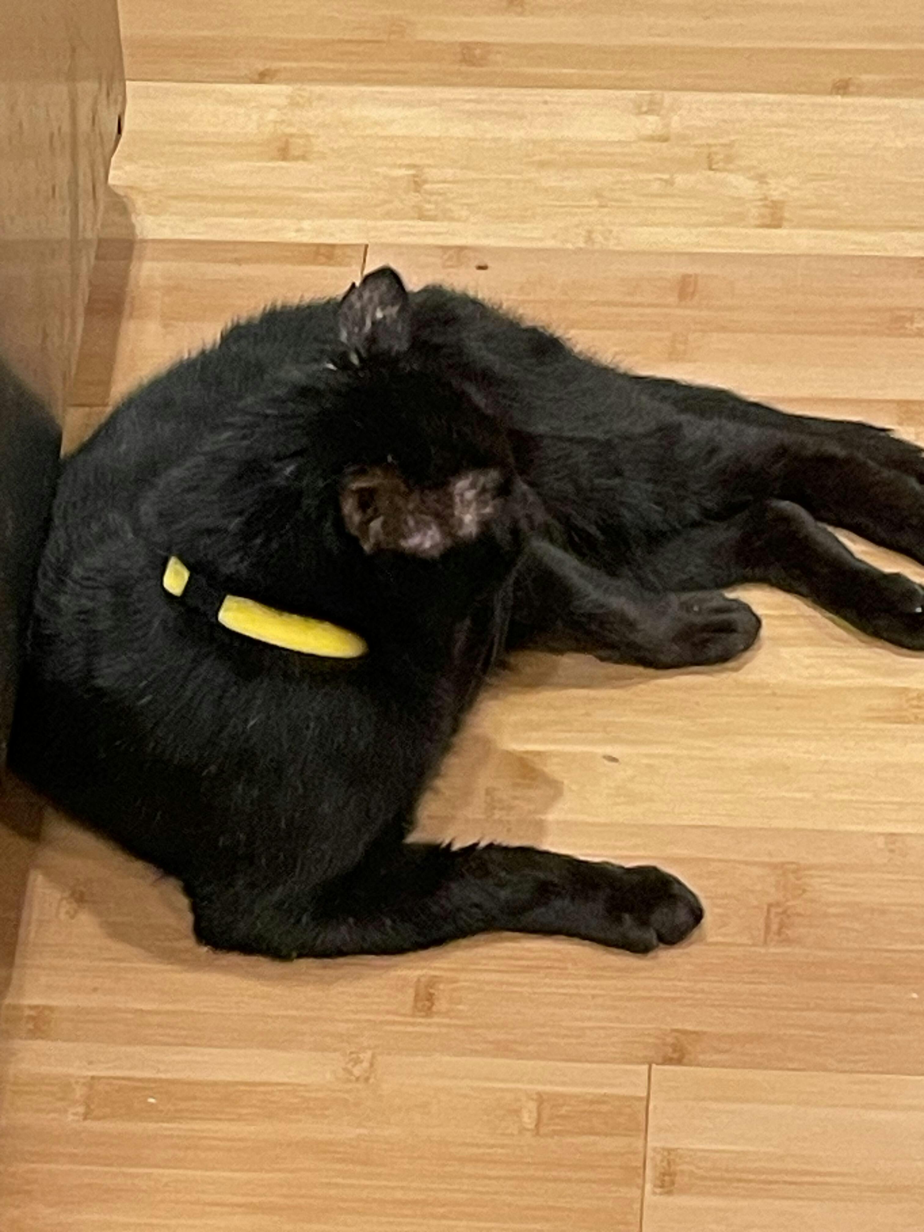 Our former stray looks amazing in his new velvet collar! He went from living in briars to living the life of luxury, and the collar helps him represent. Still hardcore but looks good while flexing.