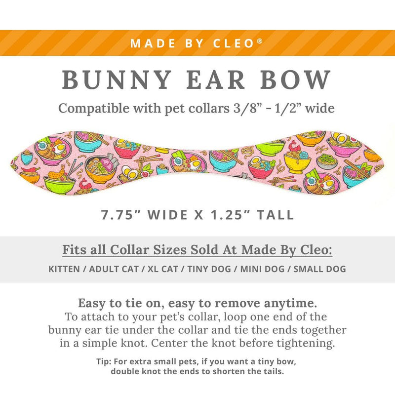 Cat Collar and Bunny Ear Bow Set - "Ramen Love - Pink" - Ramen Cat Collar w/ Matching Bunny Bow Tie / Asian Food, Fun, Girl Cat / Tie-On Scarf / Cat, Kitten + Small Dog Sizes