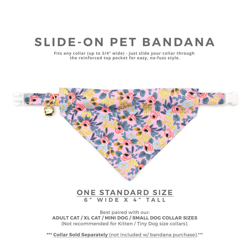 Pet Bandana - "Ophelia" - Rifle Paper Co® Pink Floral Bandana for Cat + Small Dog / Slide-on Bandana / Over-the-Collar (One Size)