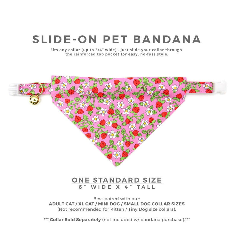 Pet Bandana - "Wild Strawberry - Pink" - Liberty of London® Berry Floral Bandana for Cat + Small Dog / Spring + Summer / Slide-on Bandana / Over-the-Collar (One Size)