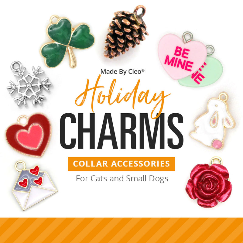 • Choose from the 30+ styles listed in this "Holiday & Seasonal" series. See all photo grids on this page for the complete selection of options.For additional pet collar charm collections, browse here. Collar charms make wonderful gifts and are perfect for adding a little extra personality and polish (without going overboard). Sized for cats and small dogs (sizes vary depending on style - see measurements below).