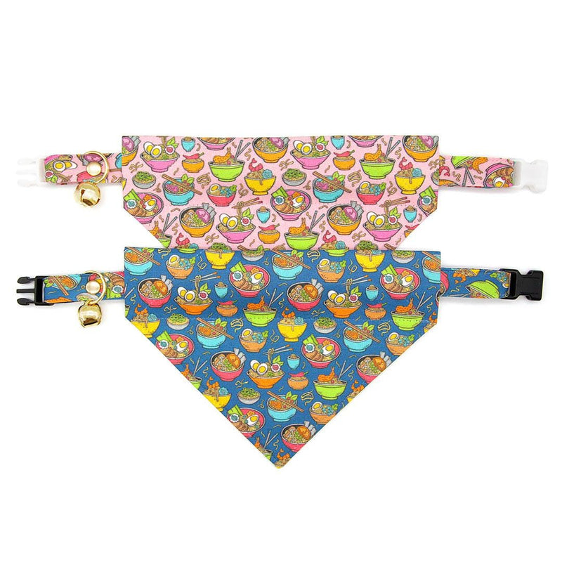 Ramen Cat Collar - "Ramen Love - Blue" - Noodles Cat Collar / Food, Fun, Asian / Breakaway Buckle or Non-Breakaway / Cat, Kitten + Small Dog Sizes