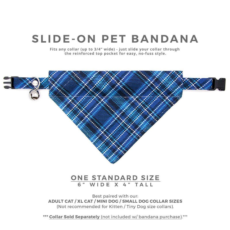 Plaid Cat Bandana - "Echo Peak" - Blue Bandana for Cat + Small Dog / Fall, Winter, Male, Masculine / Slide-on Bandana / Over-the-Collar