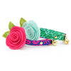 Cat Collar + Flower Set - "Cabana Green" - Tropical Hawaiian Cat Collar w/ Mint Felt Flower (Detachable) / Cat, Kitten + Small Dog Sizes