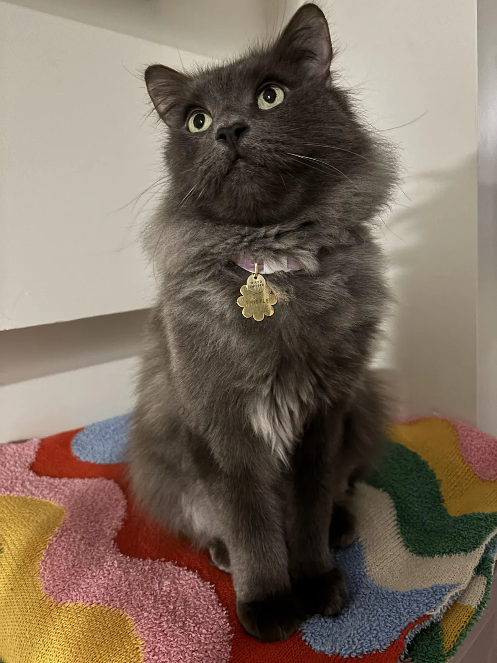 Every time I catch a peak of the purple collar in my cat’s wild mane, I smile! It’s so beautiful and he absolutely did not mind me putting it on him, so we will be ordering more and really accessorizing (:
