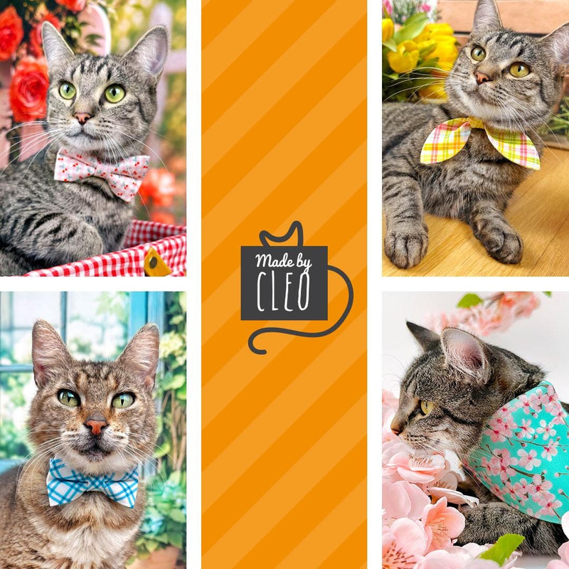 Gingham Cat Collar + Flower Set - "Cherry Jubilee" - Pink Cherries Cat Collar + Baby Pink Felt Flower (Detachable) / Cat, Kitten + Small Dog Sizes