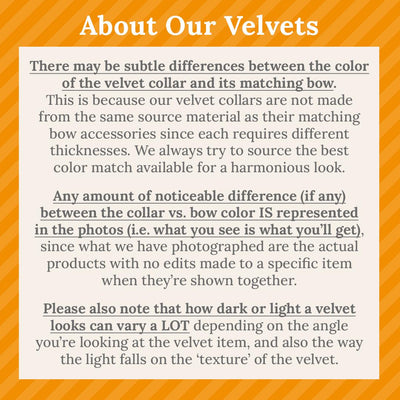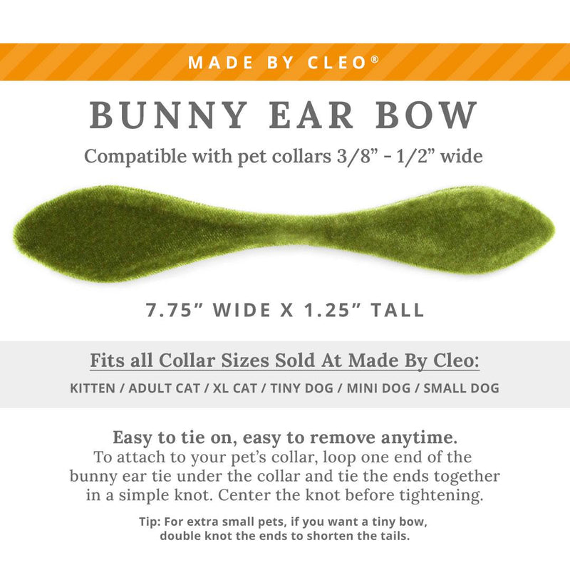 • Bunny Ear Bows are self-tie: Easily tie them onto a collar or remove them anytime, similar to a small neck scarf. 100% Machine washable, air dry. Press with iron using Polyester setting (for velvet) if desired - MUST use a presser cloth to protect the surface of the velvet from the iron to prevent melting. Iron with caution.