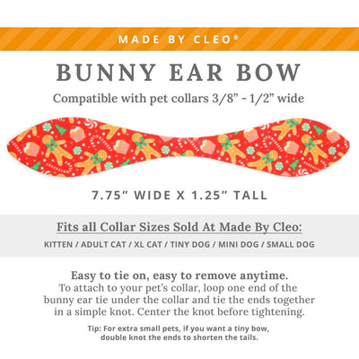 Cat Collar & Bunny Ear Bow Set - "Christmas Treats - Red" - Holiday Gingerbread Cat Collar w/ Matching Bunny Bow Tie / Cat, Kitten + Small Dog Sizes