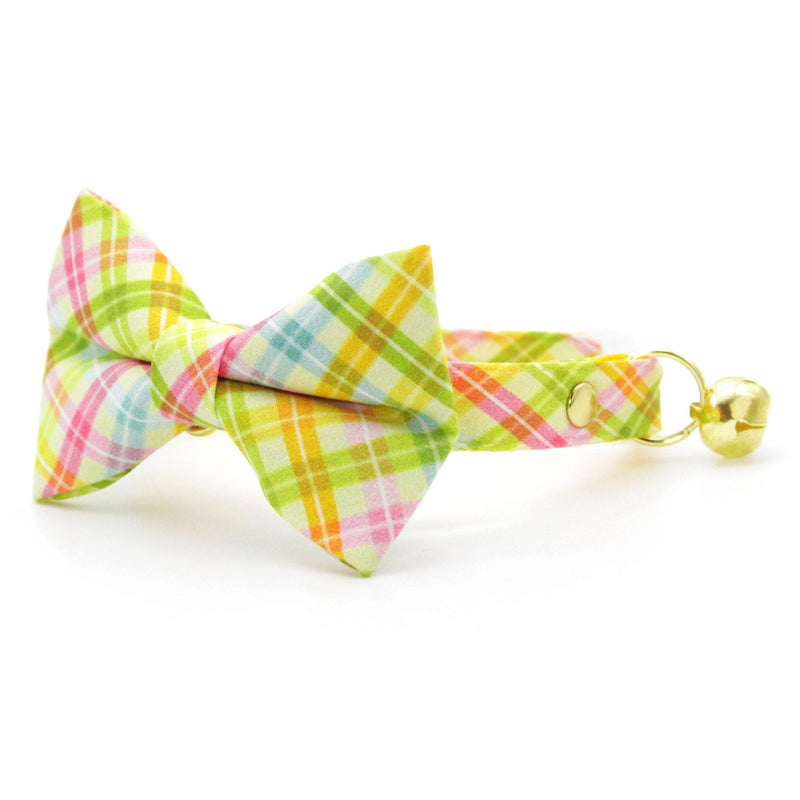 Spring Plaid Bow Tie Cat Collar Set - "Spring Basket" - Yellow Pastel Plaid Cat Collar with Bow Tie / Easter, Summer / Cat, Kitten, Small Dog Sizes