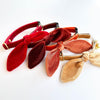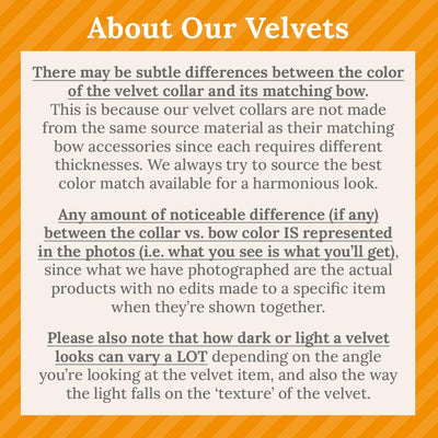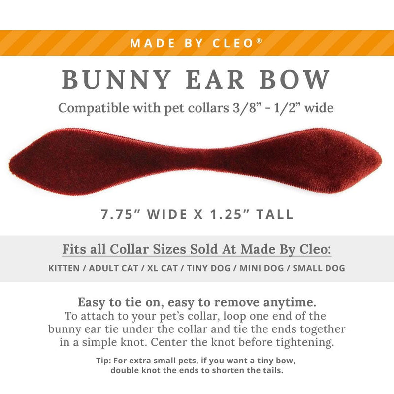 • Bunny Ear Bows are self-tie: Easily tie them onto a collar or remove them anytime, similar to a small neck scarf. 100% Machine washable, air dry. Press with iron using Polyester setting (for velvet) if desired - MUST use a presser cloth to protect the surface of the velvet from the iron to prevent melting. Iron with caution.