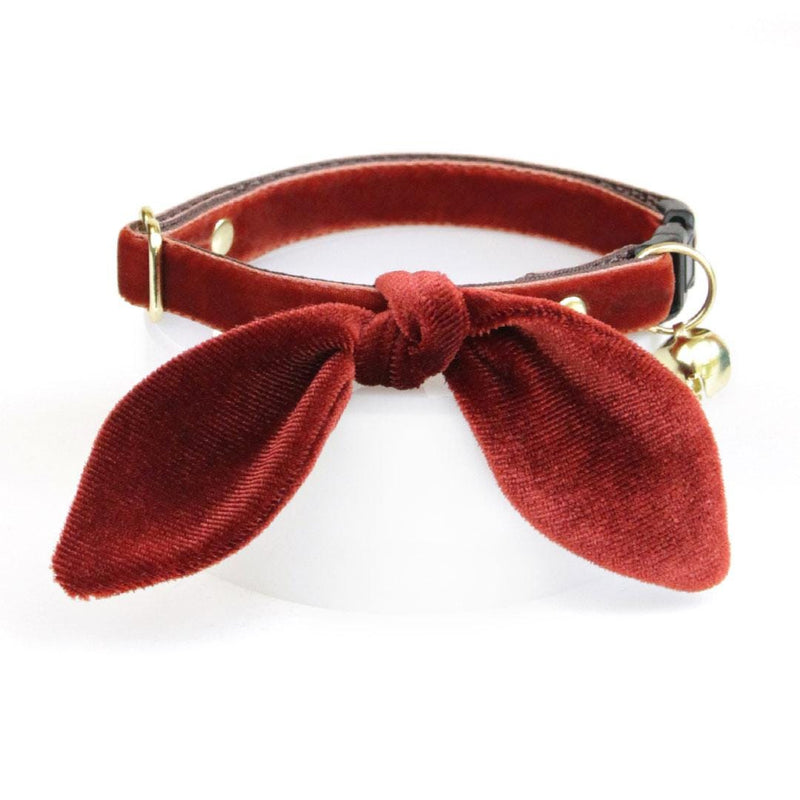 Cat Collar & Bunny Ear Bow Set - "Velvet - Mahogany" - Auburn Brown Velvet Cat Collar w/ Matching Bunny Bow Tie / Fall, Wedding + Birthday / Cat, Kitten + Small Dog Sizes