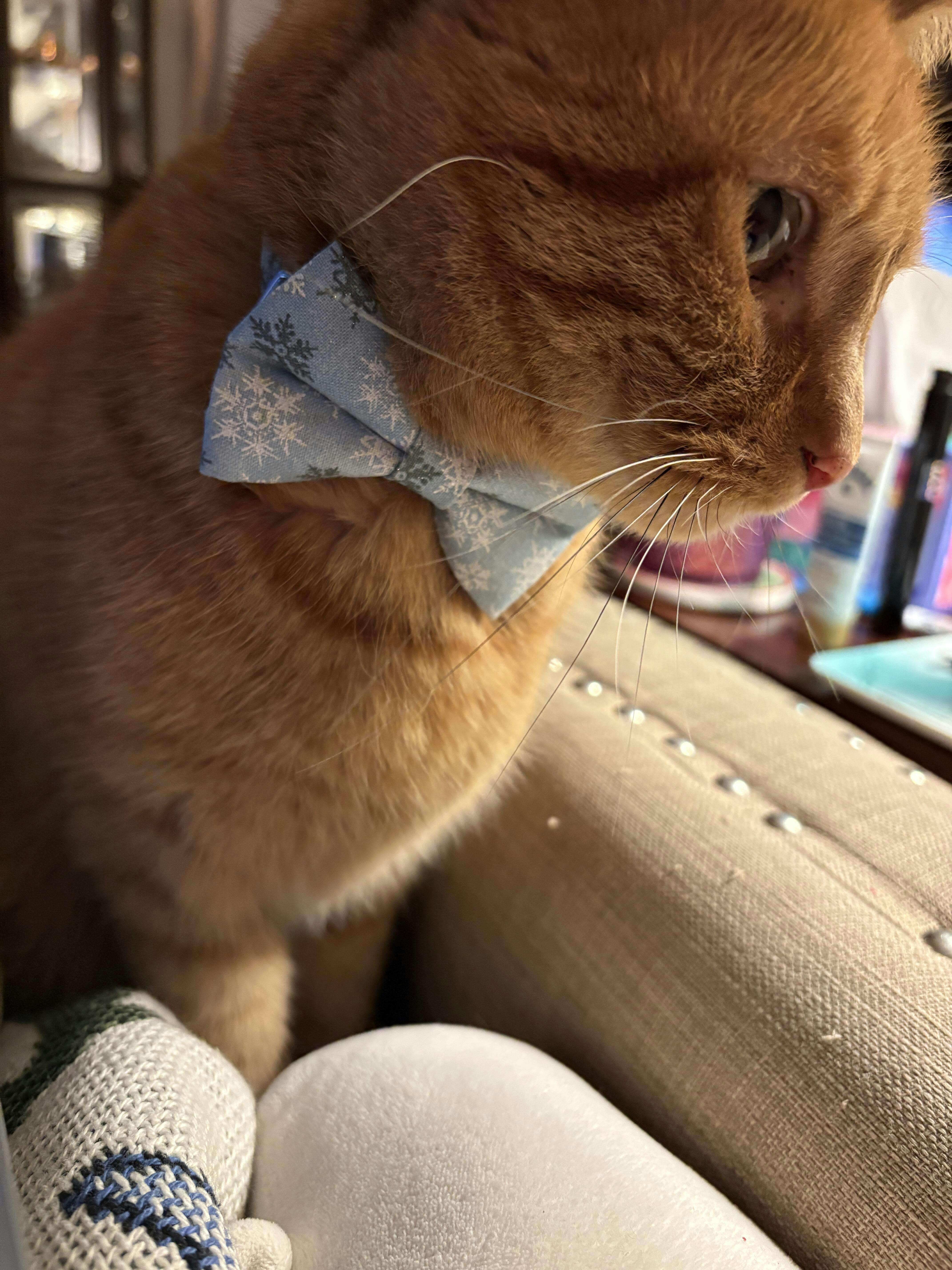 It looks so handsome on my ginger boy, and I accidentally ordered the kitten size, but it fits an 8 year old cat just fine!