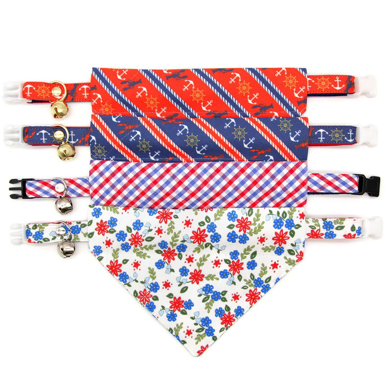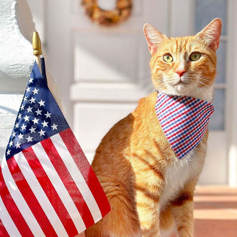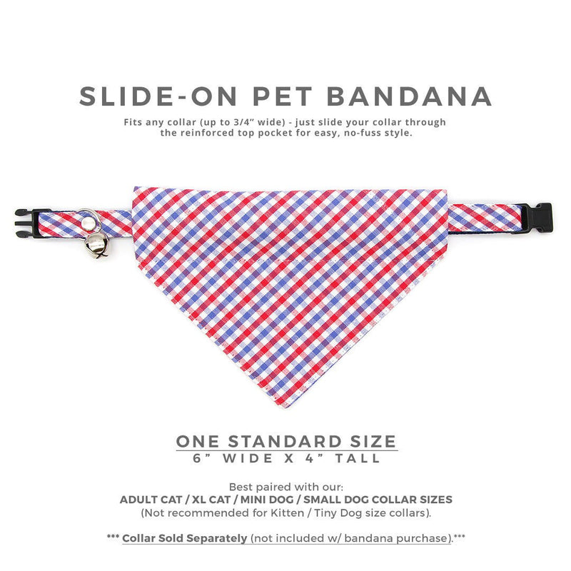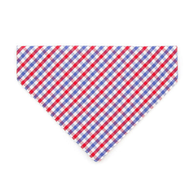 Pet Bandana - "Heritage" - Gingham Red White & Blue Plaid Bandana for Cat + Small Dog / Patriotic, Independence Day / Slide-on Bandana / Over-the-Collar (One Size)