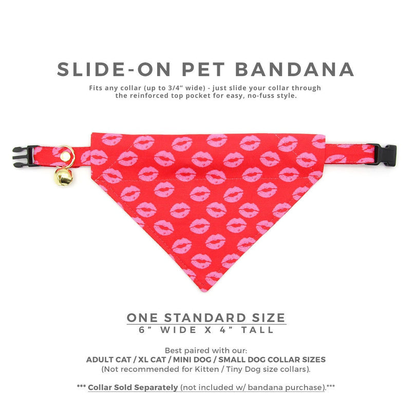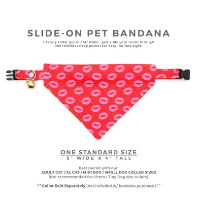 Pet Bandana - "Pucker Up" - Valentine's Day Bandana for Cat + Small Dog / Pink & Red Lipstick Kisses / Slide-on Bandana / Over-the-Collar (One Size)