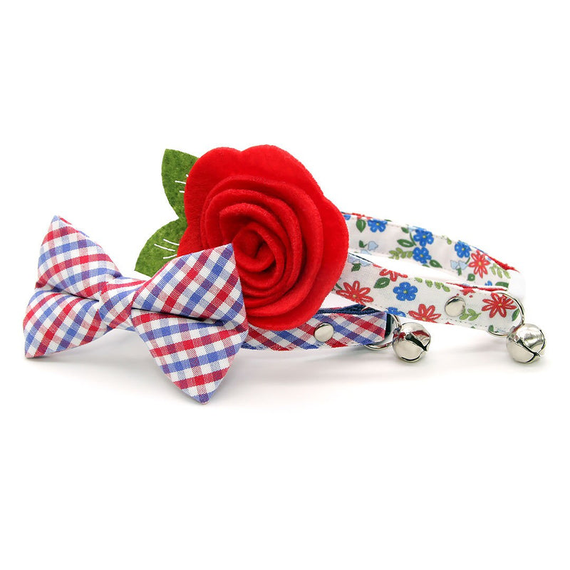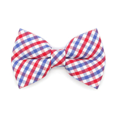 Pet Bow Tie - "Heritage" - Gingham Red White & Blue Plaid Cat Bow / 4th of July, Patriotic, Preppy, Independence Day / For Cats + Small Dogs (One Size)