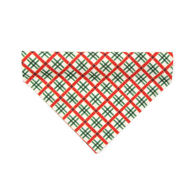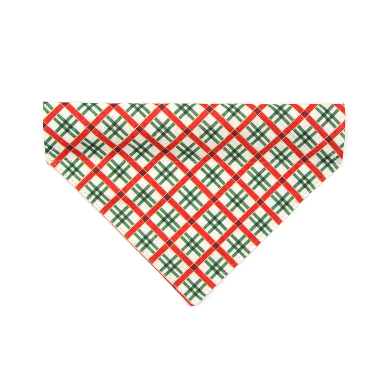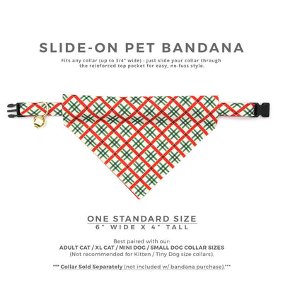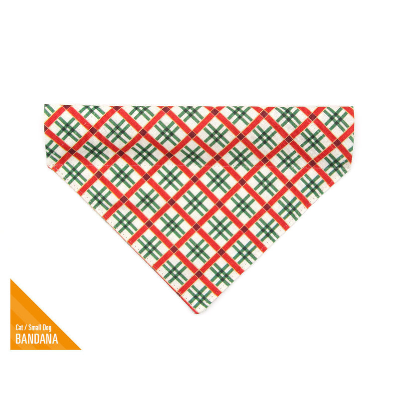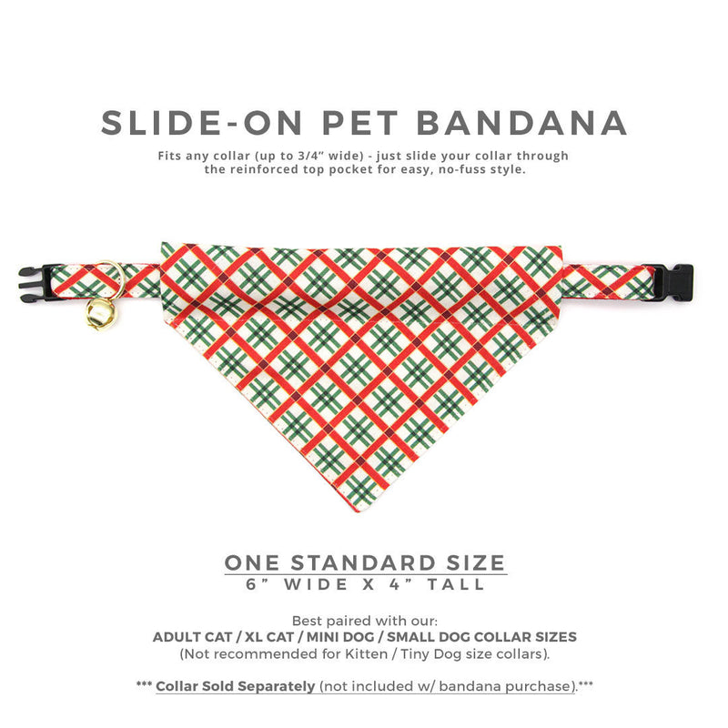 Pet Bandana - "Holiday Road" - Red & Green Plaid Bandana for Cat + Small Dog / Christmas / Slide-on Bandana / Over-the-Collar (One Size)