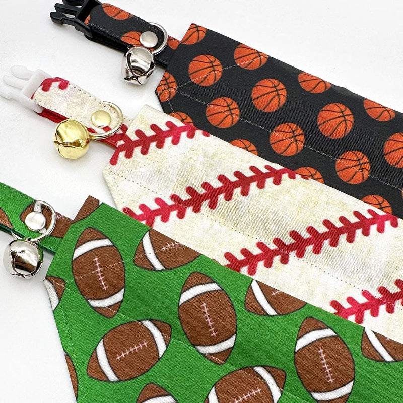 Football Cat Bandana - "Football" - Sports Green Bandana for Cat + Small Dog / Fall, NFL / Slide-on Bandana / Over-the-Collar