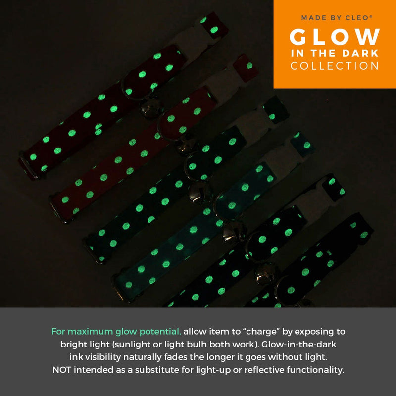 Glow In The Dark Cat Collar - "Polka Dot - Blue" - Night Visibility Navy Blue Cat Collar / Breakaway Buckle or Non-Breakaway / Cat, Kitten + Small Dog Sizes