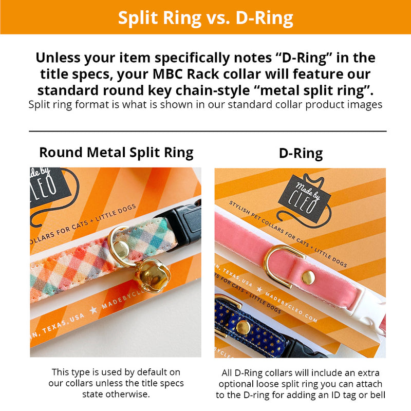 • Collar Size & Exact Hardware -are noted in the title & variant specs on this page. The product photo will accurately show the print design you will be getting but may not represent the exact hardware configuration. Please make sure you read the supporting information about Pet Collar Buckle Options (Breakaway vs Non-Breakaway) so you understand the difference and do not buy the wrong type for your needs.