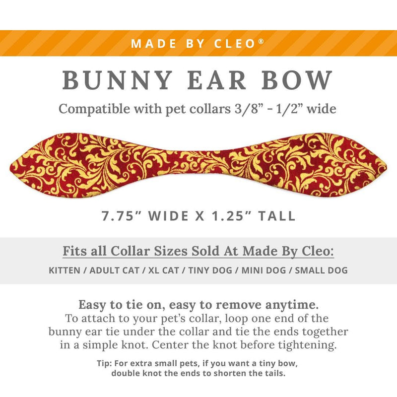 • Bunny Ear Bows are self-tie: Easily tie them onto a collar or remove them anytime, similar to a small neck scarf. 100% Machine washable, air dry. Press with iron using Cotton setting if desired.