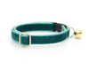 Cat Collar + Flower Set - "Velvet - Ocean Teal" - Deep Blue/Green Cat Collar w/ Teal Felt Flower (Detachable)
